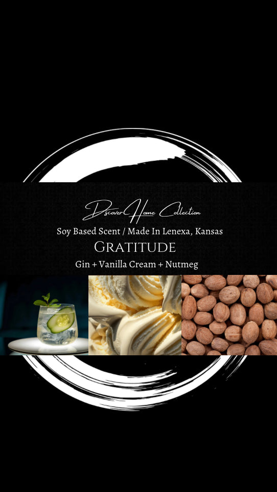 Gratitude is a warm, comforting fragrance designed to center the senses and invite mindful appreciation. Crisp gin opens the scent with a clean, aromatic brightness, gently softened by the smooth richness of vanilla cream. A subtle nutmeg base adds quiet spice and depth, grounding the blend with a sense of warmth and familiarity. Each burn fills your space with calm intention, gentle comfort, and a feeling of peaceful contentment.